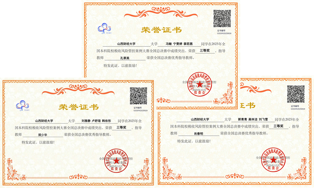 我校财政与公共经济学院作为山西省分区赛的承办单位,自赛事启动以来,由学院财税学科竞赛委员会全面统筹赛区组织工作。分区赛共征集作品50余份,评审团队由业界业务骨干、注册税务师及高校专家共同组成。学院领导高度重视本届赛事,在广泛动员学生积极参与的同时,系统组建了由专业教师与实践基地专家构成的指导团队,为参赛学生提供全程化、专业化支持。从分区赛到全国总决赛,指导教师团队以精准、严谨的指导,带领学生反复打磨案例,不断提升作品质量。全国总决赛采用“案例汇报+专家提问+现场答辩”的综合考核方式,经过激烈角逐,3支代表队均荣获国家级三等奖,充分展现了我校学子扎实的专业功底、出色的团队协作与应变能力,也体现了学院长期以来重视教学实践、以赛育人的显著成效。