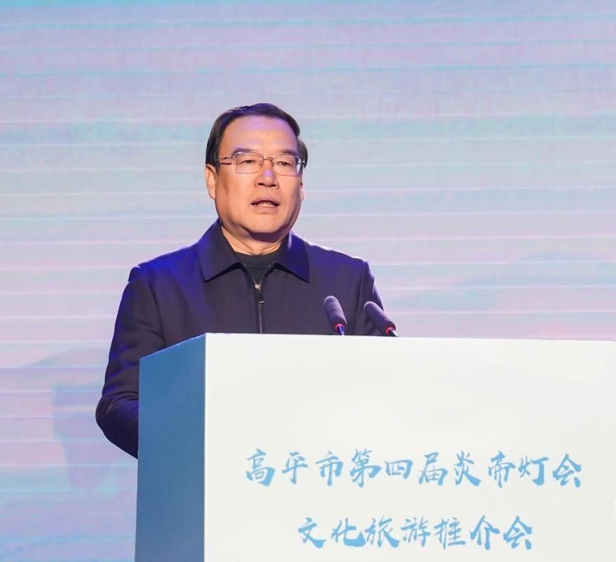 丁耀武在致辞中对活动举办表示热烈祝贺,向高平市委、市政府代表团致以诚挚欢迎,也向重回母校的1989级环管专业优秀校友原健表达了亲切问候。他介绍了山西财经大学的办学成就和学科优势。他指出,山西财经大学自建校以来,始终与三晋大地同呼吸、共命运,在人才培养、学科建设和服务地方社会经济发展等方面积累了丰硕成果,累计培养23万名各类人才,其中既有从事社会治理非常成功的政界人士,也有艰苦创业卓有成效的优秀企业家,为山西转型综改贡献了山财力量。高平作为承载华夏文明的文化沃土,炎帝文化源远流长,长平历史厚重深沉,古建瑰宝熠熠生辉,非遗魅力历久弥新,这些宝贵资源不仅是文旅发展的核心底气,更是青年学子开阔视野、实践研学的优质课堂。