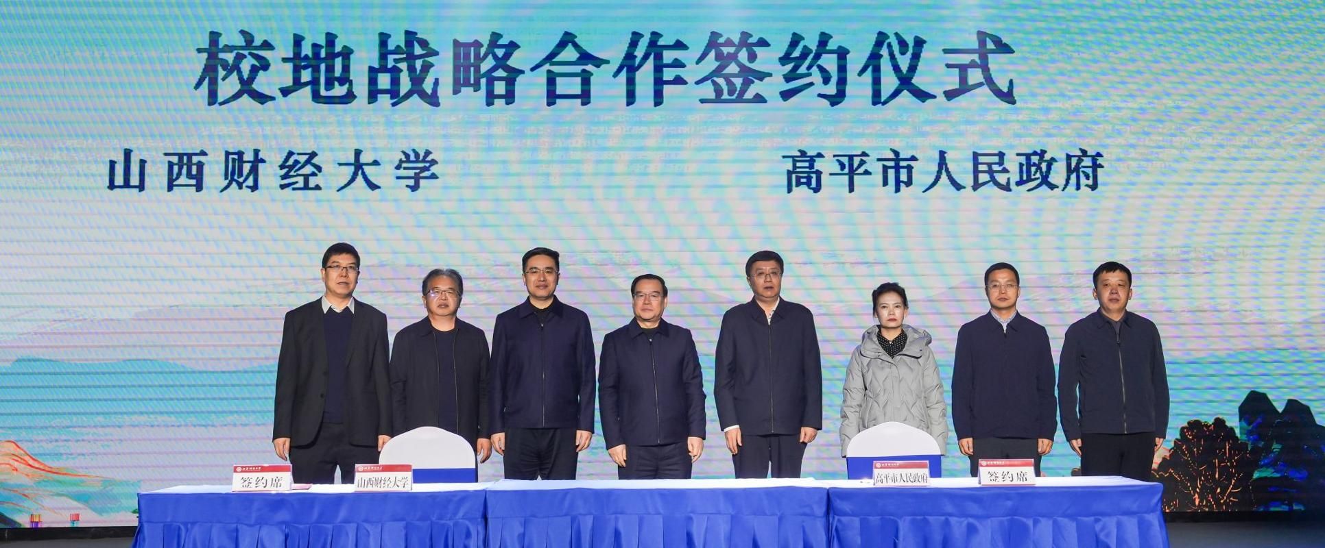 张文龙和邢军军分别代表山西财经大学和高平市人民政府签署深化校地合作战略框架协议。