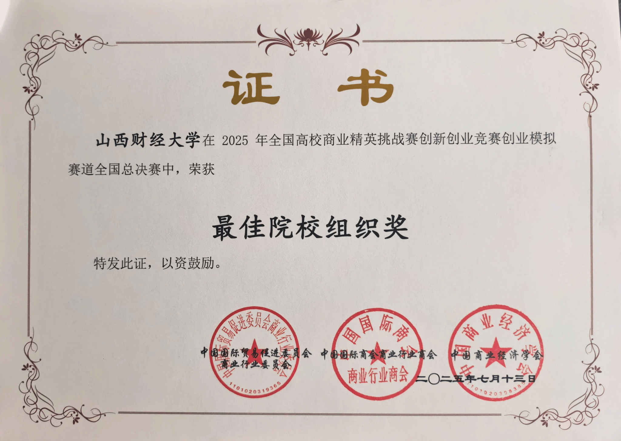 近日,2025年全国高校商业精英挑战赛创新创业竞赛创业模拟赛道全国总决赛顺利举行,本届赛事由中国贸促会商业行业委员会、中国国际商会商业行业商会和中国商业经济学会主办,吸引了来自全国31个省、自治区和直辖市的600余所高等院校参与报名。工商管理学院梁彦清老师和焦嶕老师指导的“创业第一突击小队”(团队成员:商业领导力微专业和人力资源管理专业孙豪江、李乙玲、郭曙恺、焦世龙、彭代旭)参加大赛并获得三等奖,梁彦清老师和焦嶕老师荣获最佳指导教师奖,我校荣获最佳院校组织奖。