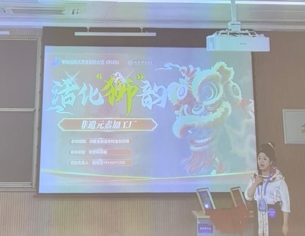 在本届大赛中,我校金融学院2023级本科生段博艺为项目负责人的“活化狮韵—非遗元素加工厂”项目表现优异,荣获主赛道本科生创意组全国银奖,实现我校在该项赛事全国总决赛现场赛奖项新的突破。