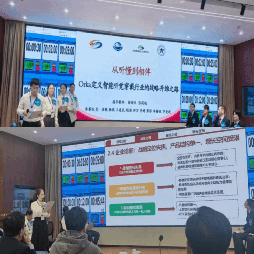 10月23日,赛事组委会下发案例《从听得见到听得懂:Orka智能助听器的破坏式创新之路》。团队即刻拆解案例核心问题,梳理行业态势,高效攻坚。高强度备赛尽显团队专业素养与协作力,指导教师解读破题指方向,成员分工明确,各司其职,确保方案落地。经过多轮案例分析与集体研讨,最终确定了“从听懂到相伴:Orka定义智能听觉穿戴行业的战略升维之路”的文案题目,从战略升维角度切入,提出为企业重新定义新品类,通过产品极致化战略、平台服务化战略和生态共同体战略协同发力,实现Orka在新的智能听觉穿戴设备品类中的升维跃迁。